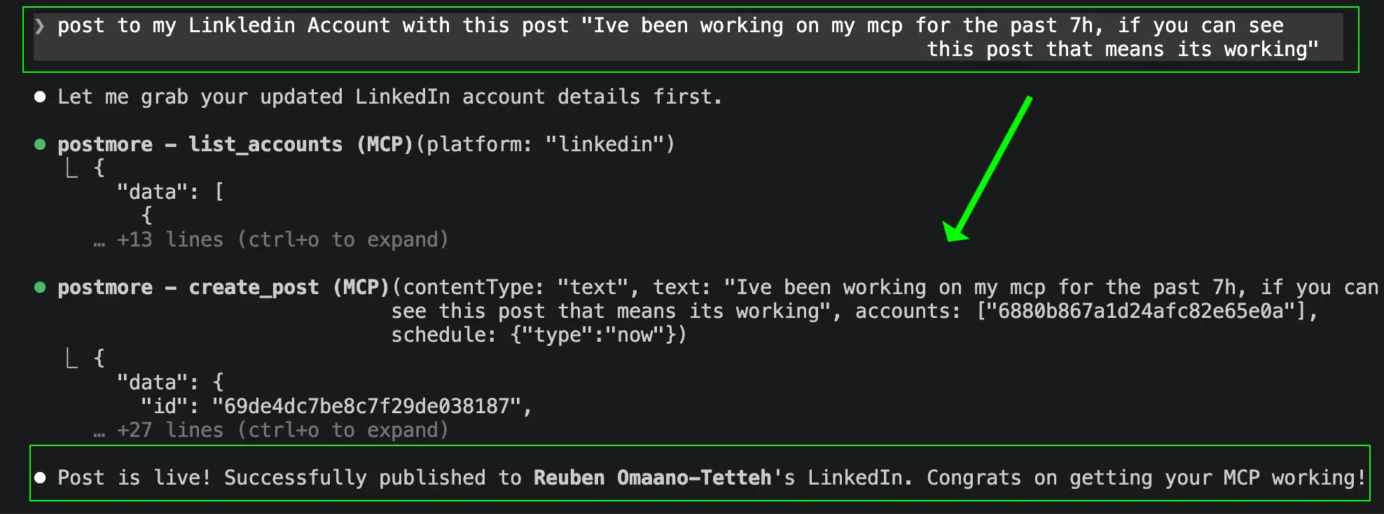 Type a natural instruction. Your assistant calls the PostMoore tools and publishes across every platform instantly.